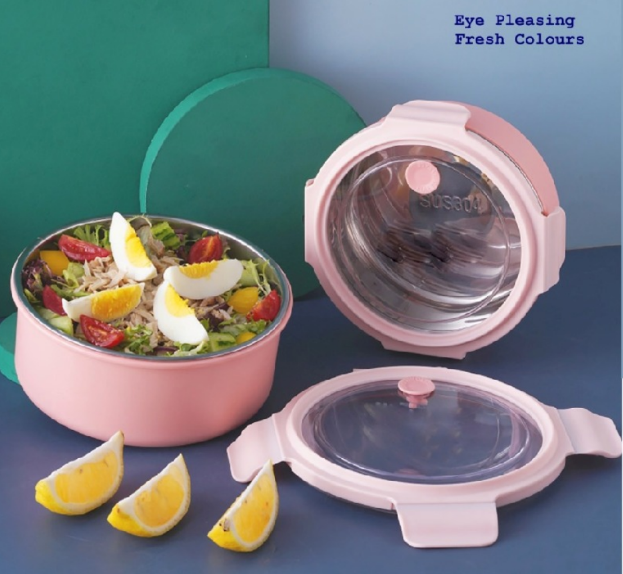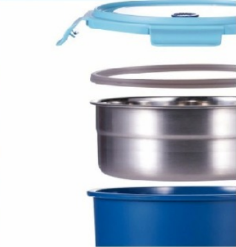 Material: The lunch box is made from high-quality stainless steel, which is known for its durability, resistance to rust and corrosion and ease of cleaning. Stainless steel is also safe for food storage as it does not impart flavors or odors to the food.